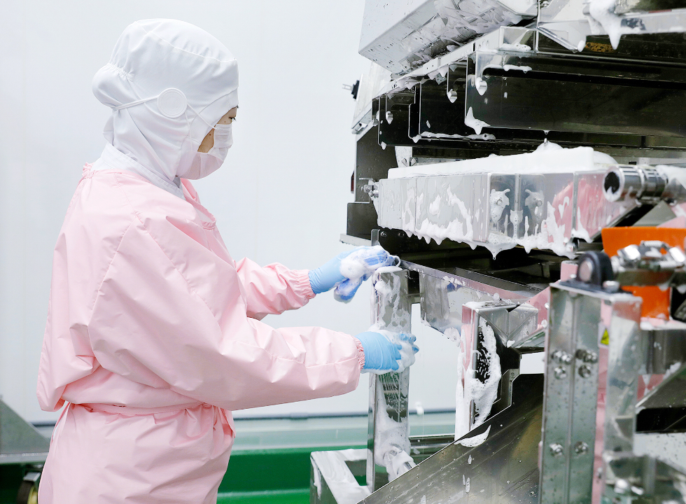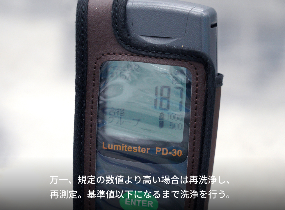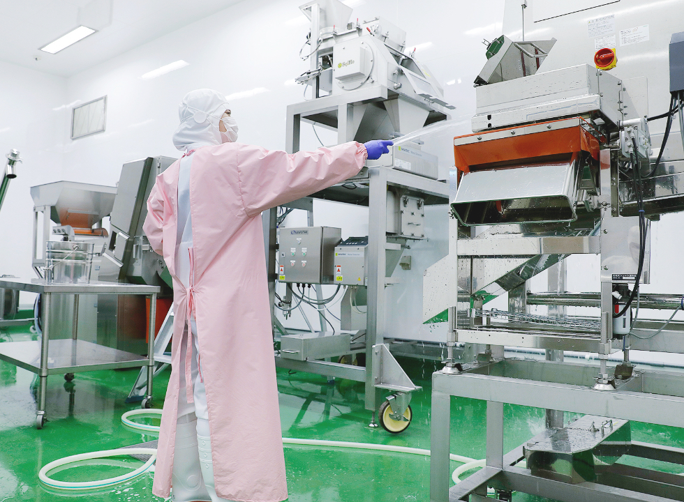 製造毎に機械全体を丸洗いすることで常に清潔な状態で選別が可能です。
